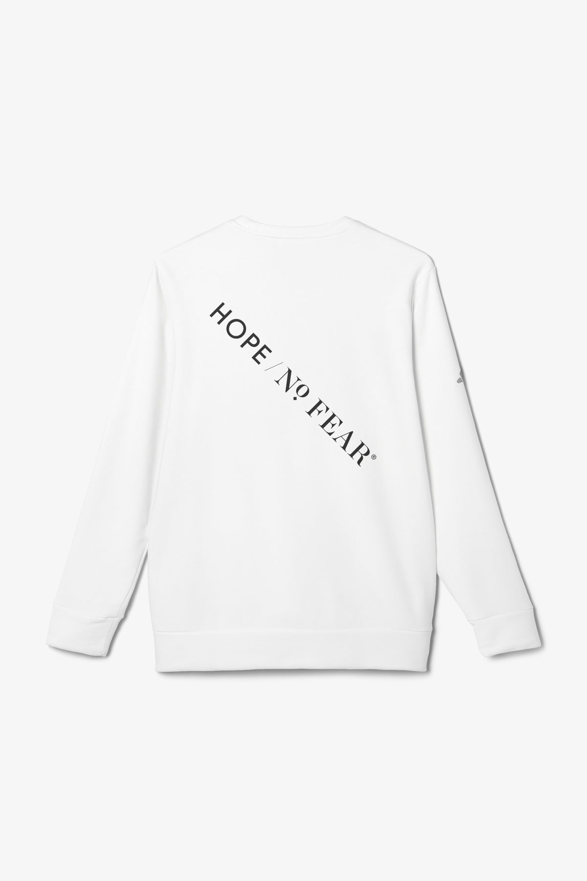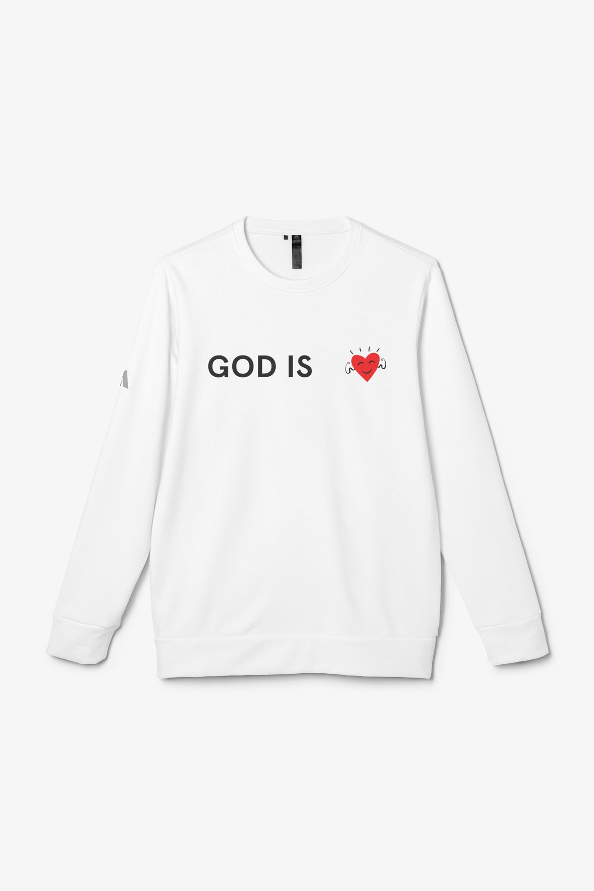 This crewneck sweatshirt combines clean minimalism with gentle, faith-forward messaging. The front quietly reads “GOD IS” with a small, hand-drawn heart illustration, while the back carries a slanted “HOPE / NO FEAR” slogan that feels like a private reminder you wear. The medium-heavy fabric gives it a cozy, substantial drape without feeling bulky. Cuffed sleeves and a fitted hem keep the silhouette neat. Subtle construction details — a self-fabric necktape, side seams and sewn-in labels — make this piece hold its shape and stay comfortable after many wears. The contrast adidas® logo on the sleeve adds a hint of sporty authenticity. It’s a calm, contemplative layer that slips easily into everyday wardrobes and quiet moments of reflection.
