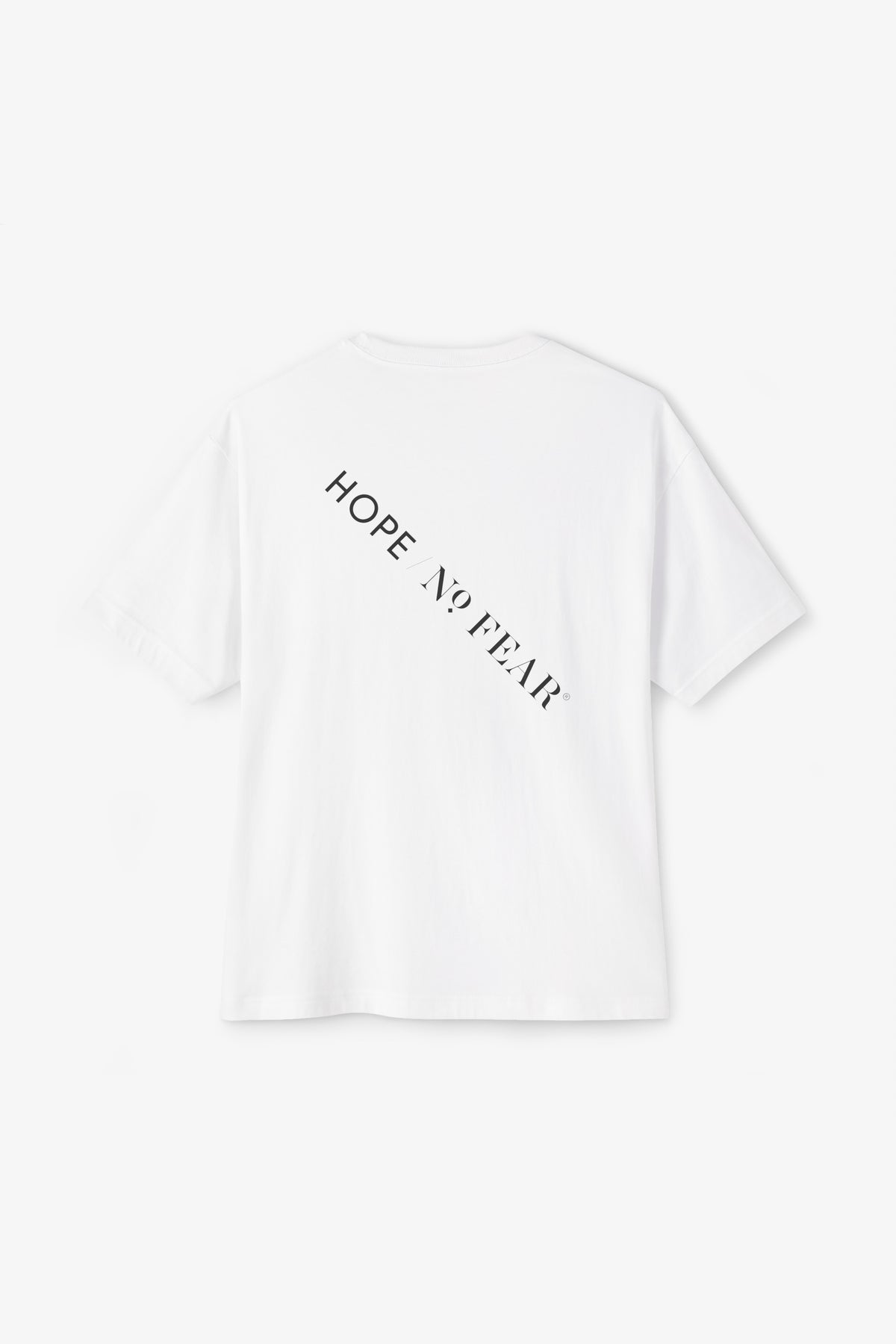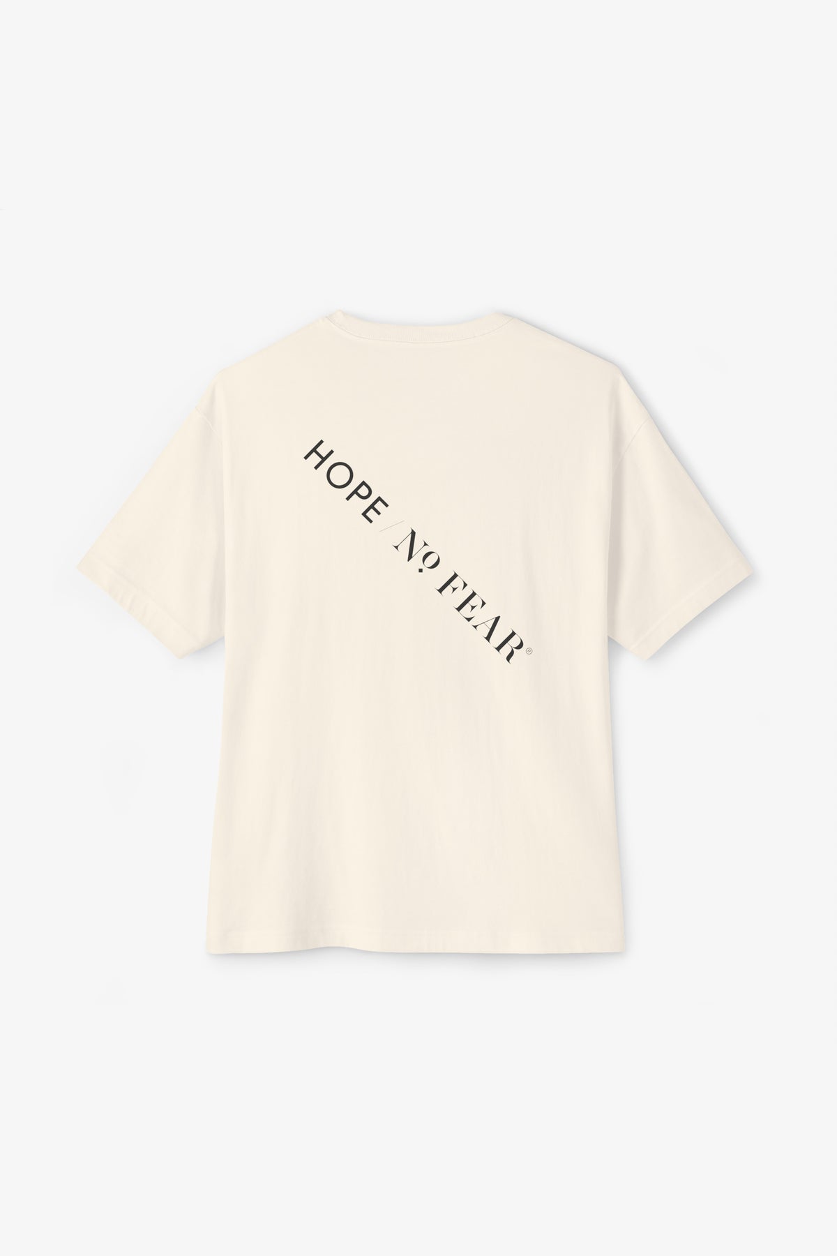 The oversized boxy silhouette drapes with relaxed ease, letting the minimalist, slightly vintage serif typeface do the talking. It sits like a dependable companion—soft against the skin, breathable, and built to move through everyday life without fuss. Wear it on slow mornings with coffee and a paperback, layered under a denim jacket for city wandering, or slipped on after a long day when you want comfort that still feels considered. The clean black-and-white palette keeps the message front and center, while the roomy cut makes it simple to style and natural to live in.